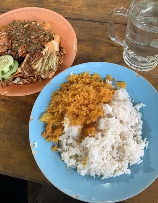 Selain lauk dan sambal yang bikin ngiler sampai lupa dunia, nasi yang disajikan pun tidak kalah nikmat. Nasi putih hangat yang punya tingkat kematangan pas, tidak lembek seperti bubur dan tidak terlalu keras seperti nasi sisa semalam yang biasanya dibuat untuk nasi goreng. Nasi tersebut dibalur kremesan “kriuk” yang menjadi daya tarik tersendiri bagi Warung Ayam Deplok kriuk tersebut.